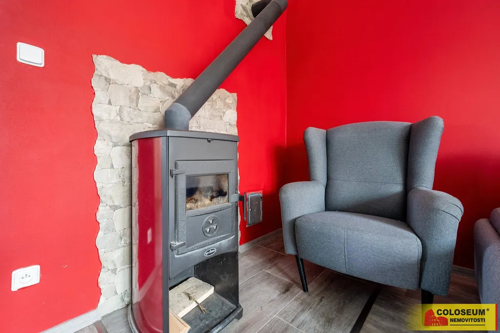 Dominantou domu je světlý a velkorysý obývací pokoj s krbovými kamny, která vytváří příjemnou atmosféru skutečného domova. Na obytnou část navazuje moderně zařízená kuchyně s dostatkem prostoru pro velký jídelní stůl – ideální místo pro společné chvíle s rodinou.