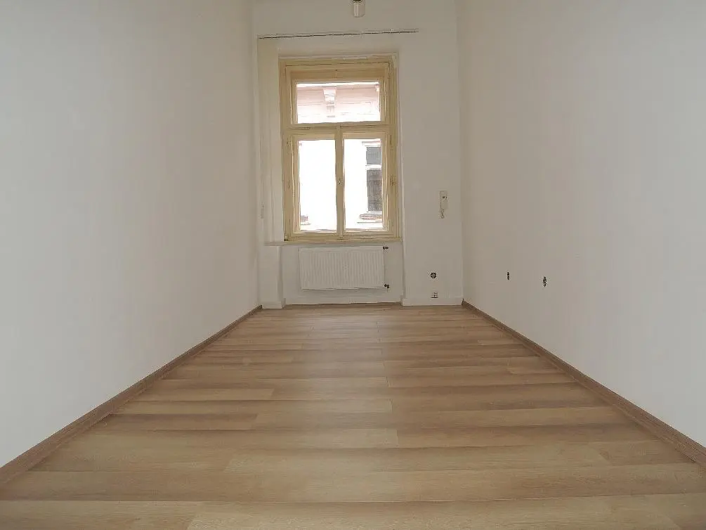 Kancelář má novou plovoucí podlahu a je nově vymalovaná. Orientace do ulice Karolíny Světlé, která je o poznání klidnější než Národní.