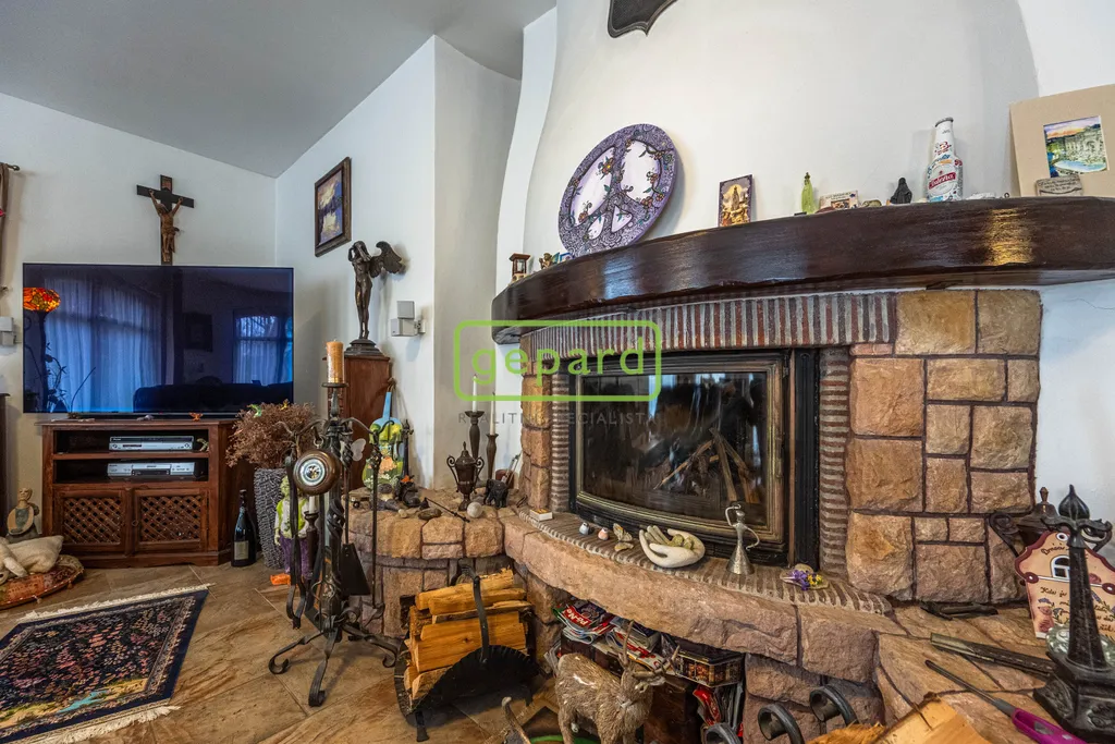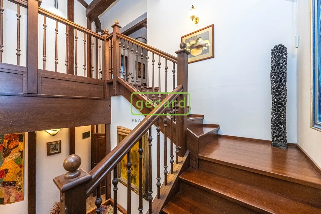 The highlight of the house is an indoor swimming pool with a counter-current system and dedicated air dehumidification, complemented by a private gym, fireplace, and three full bathrooms. The interior features high-quality, durable materials throughout, including wooden euro windows, a solid oak staircase, ceramic tiles, and wooden flooring, creating an elegant and long-lasting living environment.