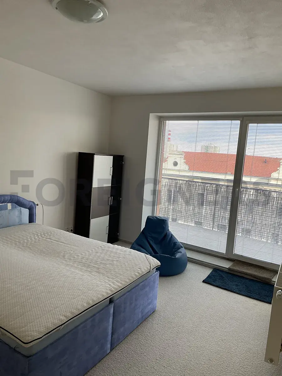 Tento apartmán nabízí úžasné výhledy z terasy o rozloze 18m2 na Třídu Míru a Staré město.