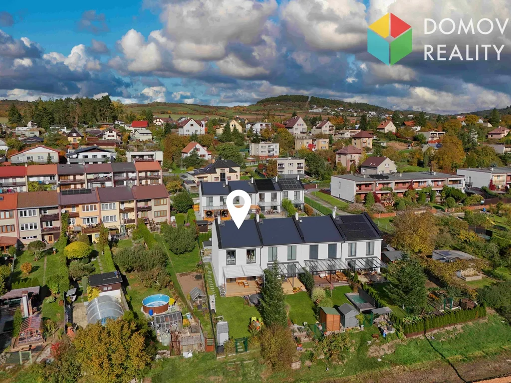 Kolaudace domu proběhla před 5 lety, je ve skvělé formě, stačí vymalovat a můžete se stěhovat. Užitná plocha domu je 102 m2, pozemek složený ze zpevněného prostoru před domem, zastavěné plochy a zahrádky za domem má výměru celkem 333 m2. Dům je napojen na obecní vodovod a tlakovou kanalizaci, dešťová voda je schraňována v retenční nádrži s čerpadlem na zalévání. Příjezd je po obecní komunikaci a po pozemku v podílovém spoluvlastnictví vlastníků řadových domů.