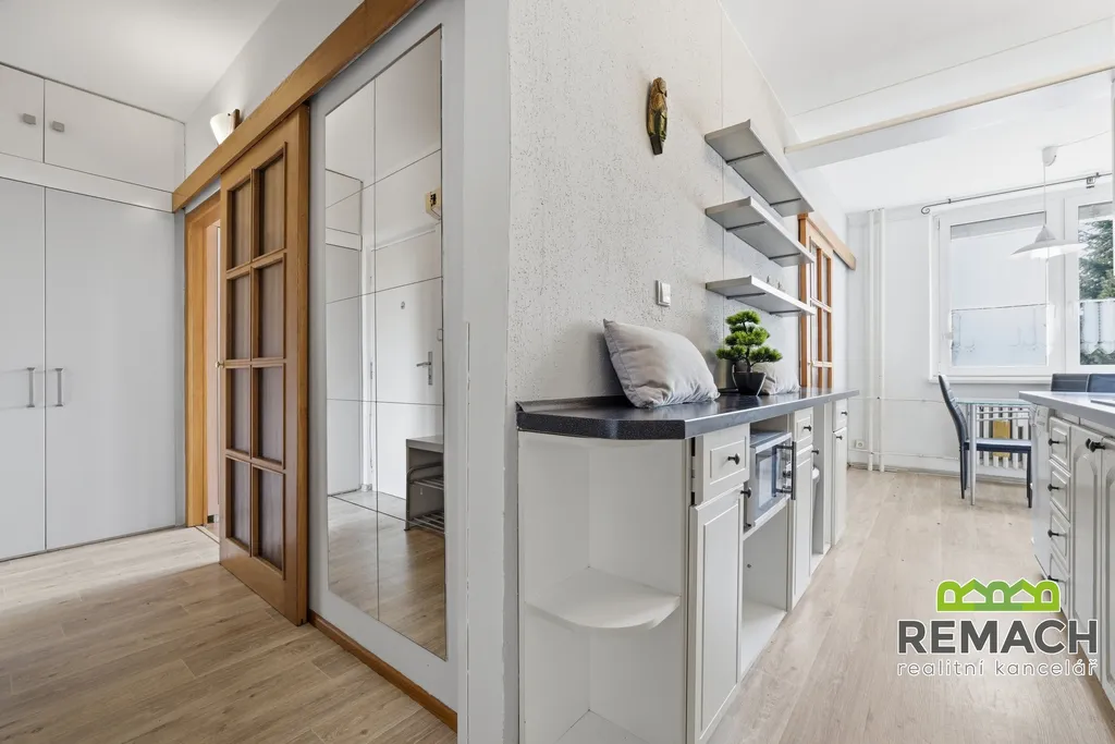 Byt je v udržovaném stavu a umožňuje okamžité bydlení, zároveň však nabízí možnost modernizace dle vlastních představ nového majitele. Velkým benefitem jsou venkovní stahovací žaluzie, které zajišťují nejen regulaci světla a teploty, ale také vyšší míru soukromí.