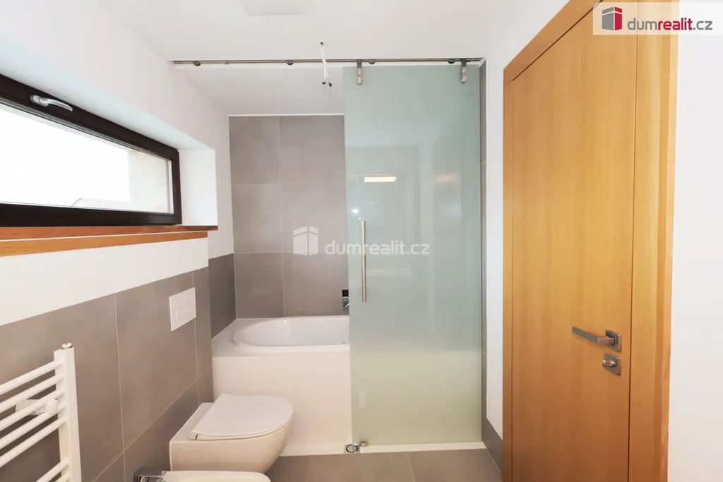 Hledáte nadstandartní dům v blízkosti budoucí stanice metra? Tak právě pro vás zde mám multifunkční, vícegenerační rodinný dům s dispozicí 6+kk v Praze 12 – Libuš, který je vzdálen pouze 2 minuty pěšky od budoucí stanice metra D a je v uzavřeném rezidenčním areálu s dalšími 15 domy. Celková podlahová plocha domu je 285,3 m², jsou zde dvě terasy (73,9 m²), plocha pozemku je 261 m² z toho zahrada má celkem 128 m². Dispozice tohoto moderního, nízkoenergetického domu tvoří v přízemí: prostorný obývací pokoj + kk (63,2 m²) se vstupem na terasu (20,1 m²), pracovna (15 m²) s vlastní koupelnou s WC (4,2 m²) a zádveří (7,5 m²). Po schodišti (6,6 m²) obloženém dřevem se dostaneme do 1. patra (2NP), kde je hlavní ložnice (21 m²) s šatnou a vlastní koupelnou s WC (8,5 m²), dále centrální koupelna (6,6 m²) s WC a bidetem, hala (5,8 m²) a dva dětské pokoje (18,6 + 19,5 m²). Po dalším schodišti se dostaneme do menší chodby (6,3 m²), která velkoformátovým oknem s HS portálem navazuje na panoramatickou terasu 74,4 m², která je z části krytá (prostor na vířivku) a je orientována na východ, sever a západ. Z obývacího pokoje se po schodišti dostaneme do suterénu domu, kde je multifunkční místnost, kterou můžete zcela upravit podle svých potřeb. Tato místnost má nadstandartních 62,4 m² a můžete zde mít opravdu cokoliv – např. samostatnou bytovou jednotku 1+kk s koupelnou a WC, kinomístnost, karaoke, panský klub, fitness anebo svoji soukromou pracovnu (např. pro advokáty, architekty, projektanty, daňové poradce apod.). Tato místnost je nedokončená a je připravena na úpravy dle vašich představ. Místnost má také přístup přímo z garáží – velmi výhodné. V suterénu domu je dále chodba se zádveřím a sklep / tech. místnost (12,3 m²) a komora (5 m²), kde je umístěný plynový kondenzační kotel. Ze suterénu je také vstup na zahradu (98 m²), která je kaskádovitá. Další zahrada je před vstupem do domu (30 m²) ve vnitrobloku. V celém domě je podlahové topení, okna jsou dřevěná, v obývacím pokoji a na terase je HS portál, u všech oken je příprava ne před okenní žaluzie, v domě je zavedeno optické vlákno na internet, podlahy jsou dřevěné vč, obložení schodiště. Vstupní dveře do domu jsou bezpečnostní, interiérové pak také dřevěné s obložkami. V areálu tohoto projektu je klid a soukromí. Osobně mohu doporučit, můj velmi blízký přítel zde bydlí, rád vám jako zájemci o koupi může předat další informace. Tento dům je rohový a celý projekt je umístěn na konci slepé ulice se vstupem do budoucího parku navazují až ke stanici metra D. Velmi vám doporučuji prohlídku tohoto domu 6+kk (285,3 m²), který vás svou velikostí ohromí, dispozicí nadchne, a nakonec chytí za srdce. Ev. číslo: 655256.