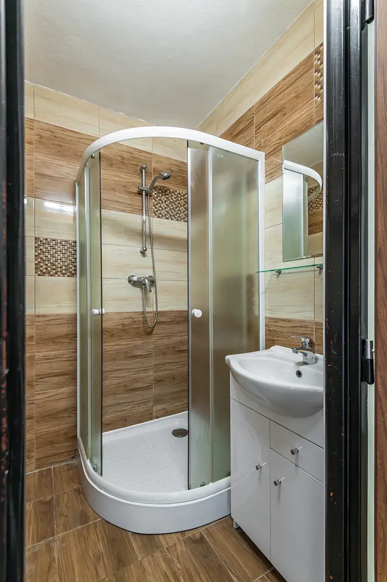 Byt prošel rekonstrukcí bytového jádra, které nabízí moderní koupelnu se sprchovým koutem, umyvadlem a prostorem pro pračku. Kuchyně je samostatná a vybavená kuchyňskou linkou s dostatkem úložného i pracovního prostoru.