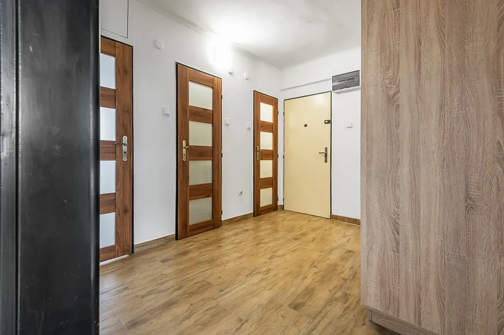 Dispozice bytu je velmi praktická – všechny místnosti jsou přístupné z centrální chodby, což zajišťuje pohodlné a přehledné uspořádání. Byt nabízí prostorný obývací pokoj a dva další velké pokoje. Byt působí velmi dobrým dojmem. Je prostorný a světlý.
