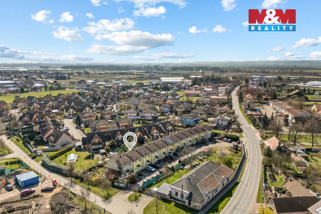 Nabízíme k prodeji, s láskou opečovávaný, útulný řadový dům 3+kk v obci Obříství, kolaudovaný v roce 2009. Dům o podlahové ploše 100 m² (obytná 80 m²) se nachází v uzavřeném, oploceném areálu 12 domů.