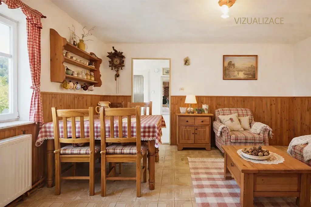 Nemovitost nabízí 5 obytných místností, takže pohodlně poslouží i početnější rodině. O vytápění se stará kotel na tuhá paliva a nechybí ani krb, který dodává interiéru tu pravou chalupářskou atmosféru.