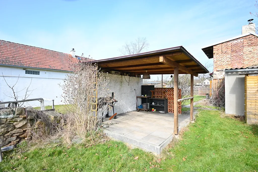 Na pozemku najdete zahradu s pergolou, ideální pro posezení s rodinou nebo přáteli. Velkým benefitem je také přírodní koupání doslova za rohem, což oceníte hlavně v letních měsících.