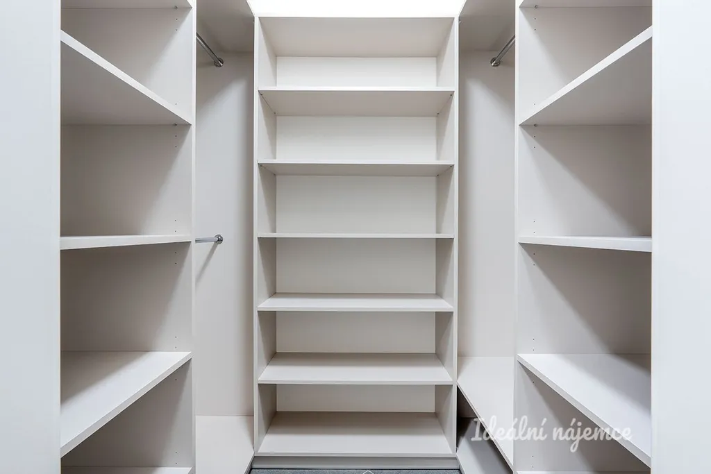 Kuchyňská linka je vybavena spotřebiči (myčka, elektrická trouba, indukční varná deska, mikrovlnná trouba, digestoř). Obývací část i ložnice jsou bez nábytku. V koupelně se nachází sprchový kout, umyvadlo se zrcadlem a WC. Součástí bytu je samostatná šatna s policovým systémem, která efektivně řeší úložné prostory.