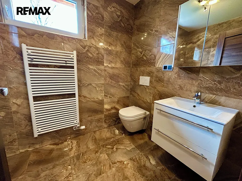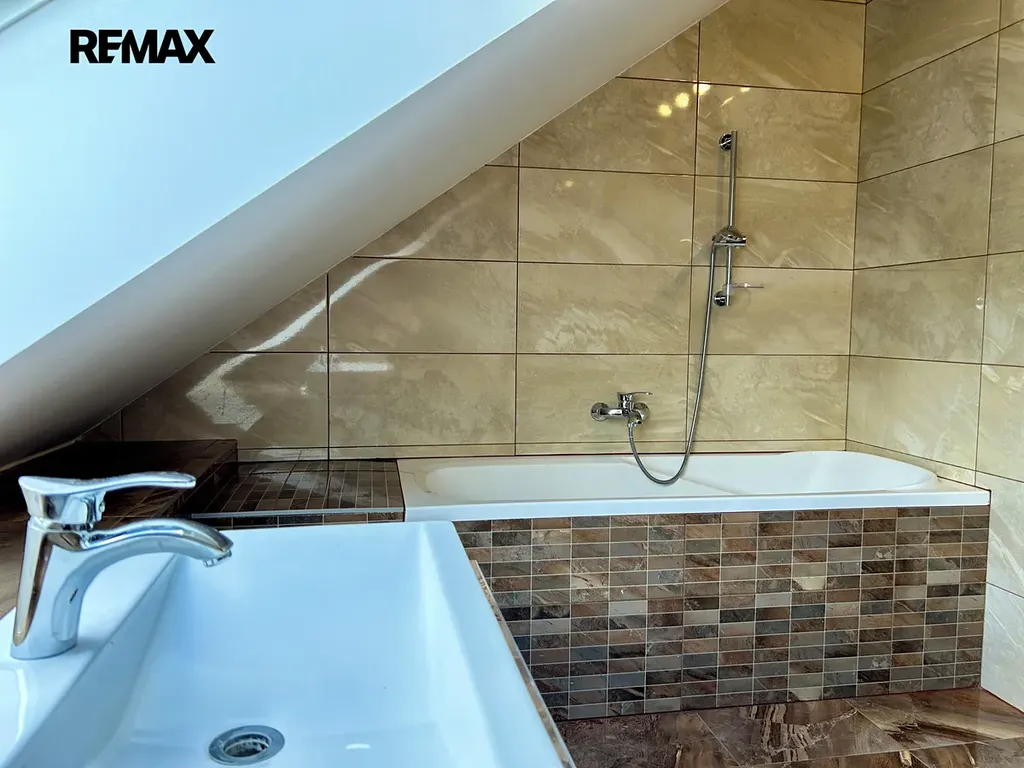 Dům je velmi dobře prosvětlený díky střešním oknům a komfort během letních měsíců zajišťují venkovní rolety v kombinaci s klimatizací. Ze spodní ložnice je přímý vstup na zahradu, kde můžete relaxovat na terase nebo na udržovaném trávníku s automatickou závlahou.