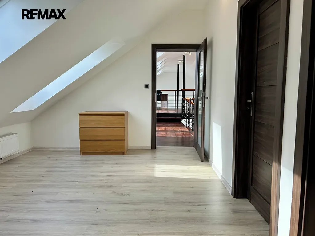 Nabízíme k pronájmu moderní rodinný dům s originálním architektonickým řešením, který přirozeně zapadá do okolní krajiny. Dům o užitné ploše přibližně 200 m² zaujme především svou vzdušností, otevřeným prostorem a dostatkem denního světla.