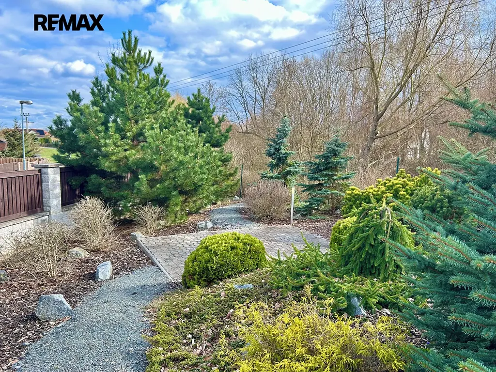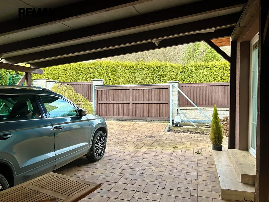 K domu náleží slunný, rovinatý pozemek o velikosti 1 241 m², situovaný v klidné slepé ulici. Velkou výhodou je dostatek soukromí a nerušené výhledy do okolní zeleně bez přímého kontaktu se sousedy.