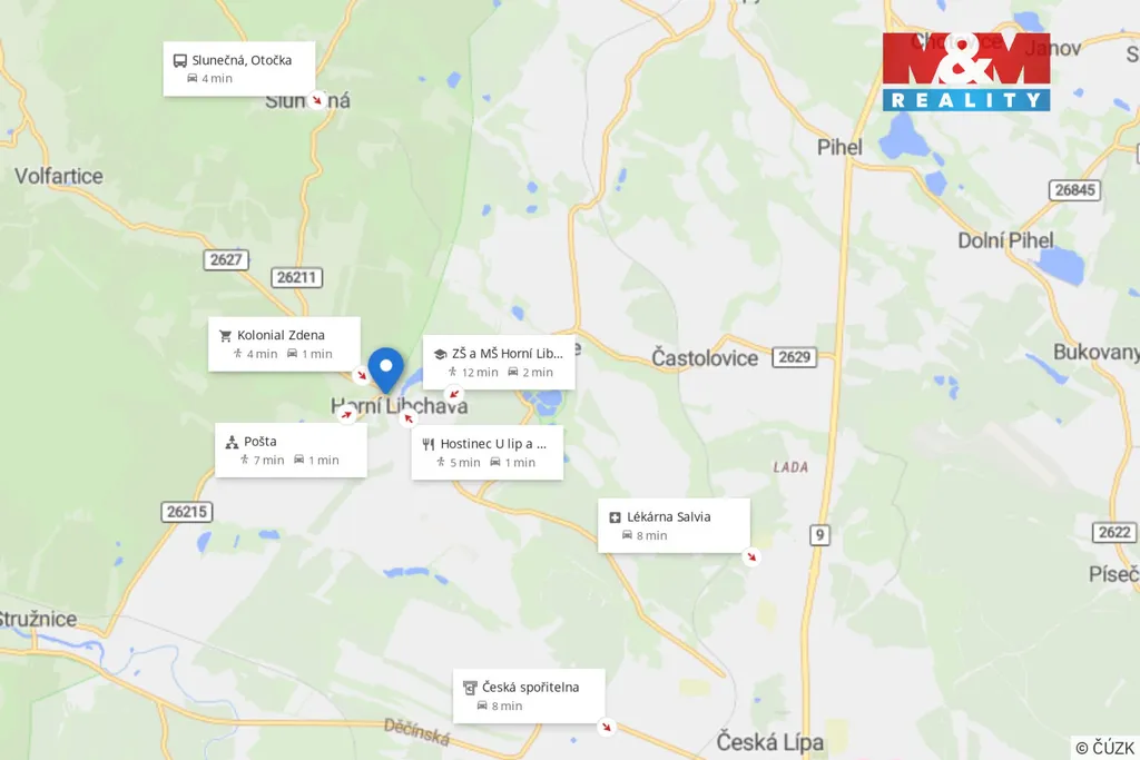 Obec Horní Libchava nabízí kompletní základní občanskou vybavenost – v docházkové vzdálenosti se nachází mateřská i základní škola, obchod, restaurace i dětské hřiště. Lokalita je oblíbená pro své klidné prostředí, přírodu a zároveň dobrou dostupnost do okolních měst.