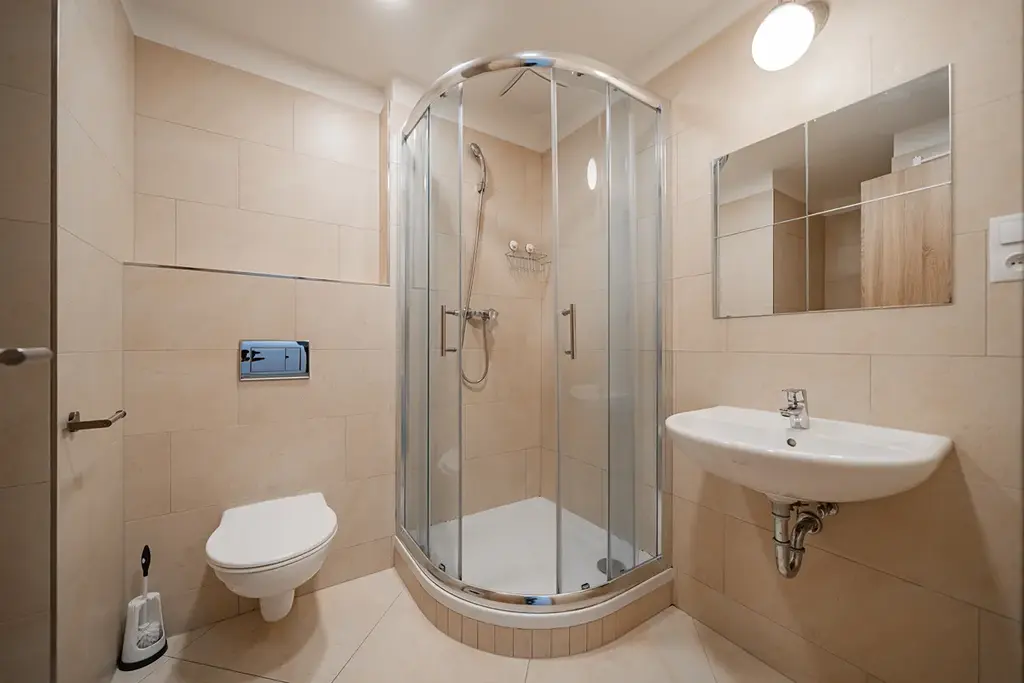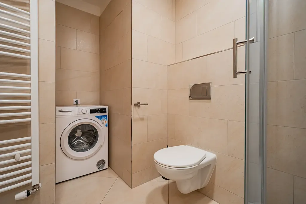 Nacházející se ve 1. nadzemním podlaží cihlového domu s výtahem, který je z roku 2019. Skládá se z jedné místnosti (rozkládací sedačka, stolek, komoda, stůl a dvě židle) kuchyňského koutu (lednice, digestoř, sporák), sociálního zařízení, které má sprchový kout, toaletu a pračku.