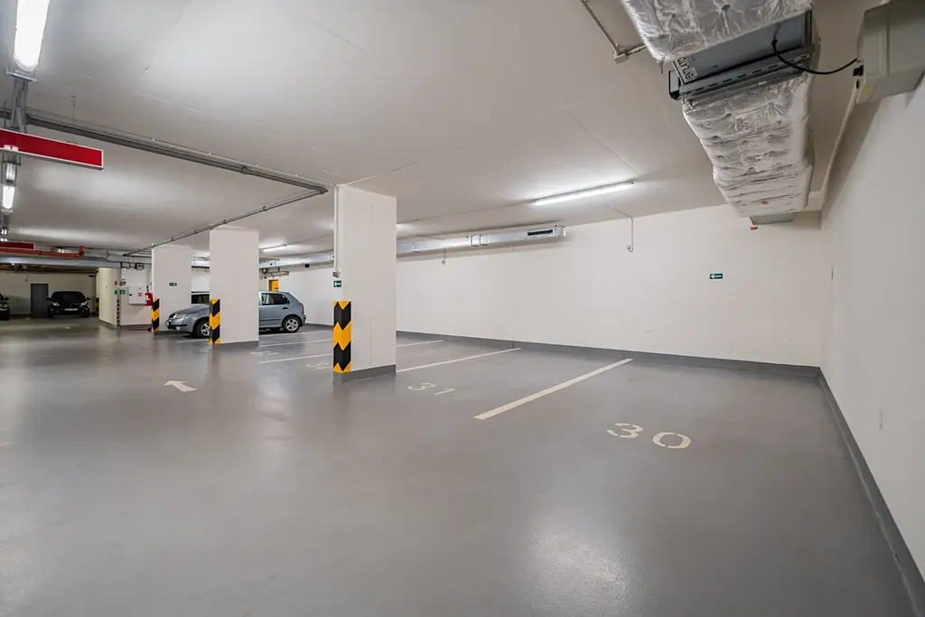 V bytě je dále komora. K bytu náleží kryté garážové stání PS 30, které je v ceně.