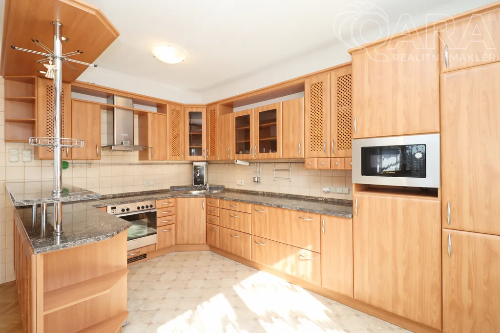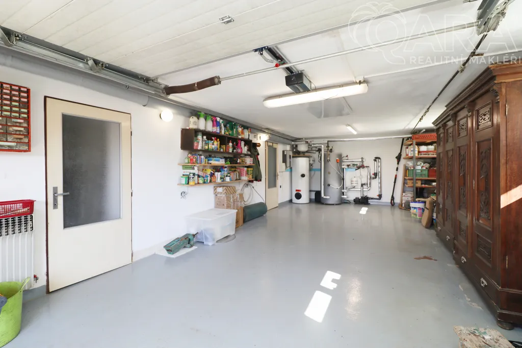 V suterénu domu se nachází prostorná garáž pro dvě auta (40 m²) spolu s technickým zázemím, sklepem, skladem a prádelnou. Přízemí tvoří světlý obývací pokoj propojený s plně vybavenou kuchyní o celkové ploše 42 m², dále pokoj vhodný jako pracovna či pokoj pro hosty, vstupní hala, samostatná toaleta a praktická spíž. V patře je k dispozici hala se vstupem do tří ložnic, druhý obývací pokoj, koupelna s toaletou a šatna.