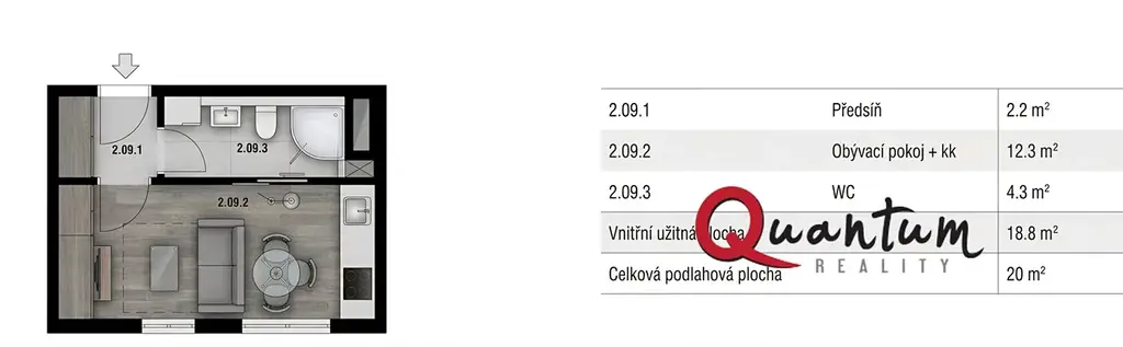 Nabízíme k prodeji moderní byt o dispozici 1+kk a podlahové ploše 20 m², který se nachází ve 2. nadzemním podlaží novostavby z roku 2020. Byt je kompletně zařízený a nabízí se včetně veškerého vybavení, které je zachyceno na fotografiích.