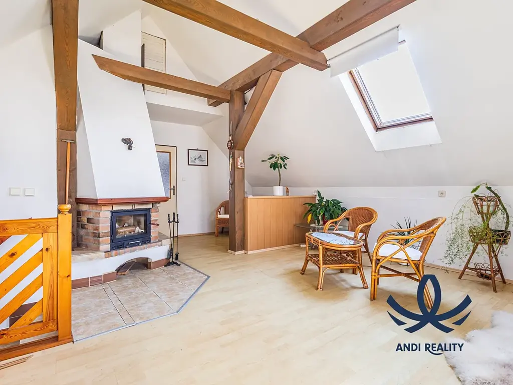 Vytápění domu je zajištěné krbem a plynem. V patře je k dispozici také velká terasa, na které si krásně vychutnáte ranní kávu nebo večer sklenku vína.