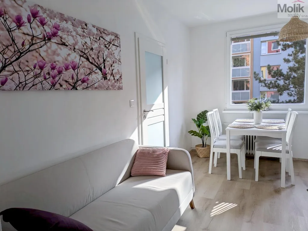Byt se nachází ve zvýšeném přízemí (1. nadzemním podlaží) domu bez výtahu. Tento měsíc byla dokončena kompletní rekonstrukce, která zahrnovala výměnu rozvodů elektřiny a odpadů, renovaci zdí, stropů i podlahových krytin (vinyl), instalaci kuchyňské linky na míru (se zabudovanou myčkou, indukční varnou deskou ,horkovzdušnou troubou a výsuvnou digestoří), nové dveře včetně obložek a rekonstrukci koupelny a WC. Byt je velmi krásný a světlý, nabízí hezký výhled na okolní zeleň. Díky své poloze poskytuje příjemnou a klidnou atmosféru. V docházkové vzdálenosti 5-10 minut se nachází Zámecká zahrada, sportovní areál Bažantnice, rybník Leontýna i centrum města.