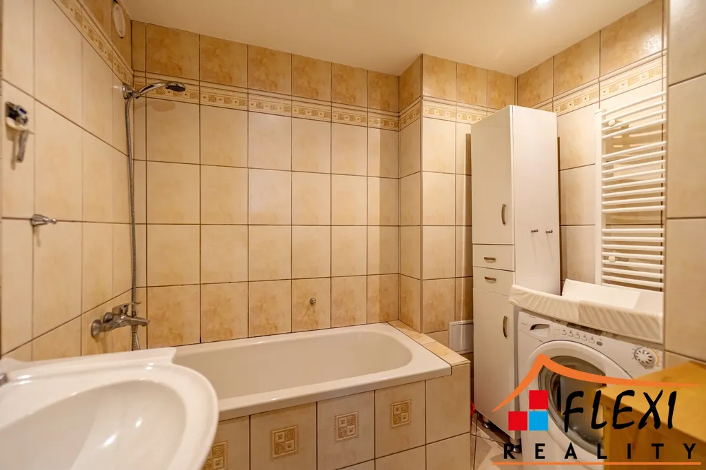 V bytě vám bude ponechána kuchyňská linka včetně vestavných spotřebičů (lednice, myčka, el.trouba, mikrovlnná trouba) a jídelní stůl se židlemi, v obývacím pokoji obývací stěna a komoda, v ložnici dále skříň společně s psacím stolem. Koupelna je aktuálně bez pračky.