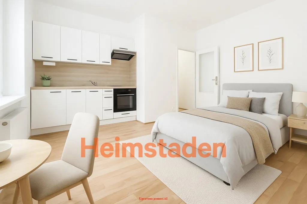 Byt prošel vkusnou a moderní rekonstrukcí. Hlavní pokoj zaujme plovoucí podlahou v dekoru dřeva, která prostoru dodává teplo a eleganci. Ve výklenku je prakticky řešena moderní kuchyňská linka v bílém dekoru s vestavěnou elektrickou varnou deskou.