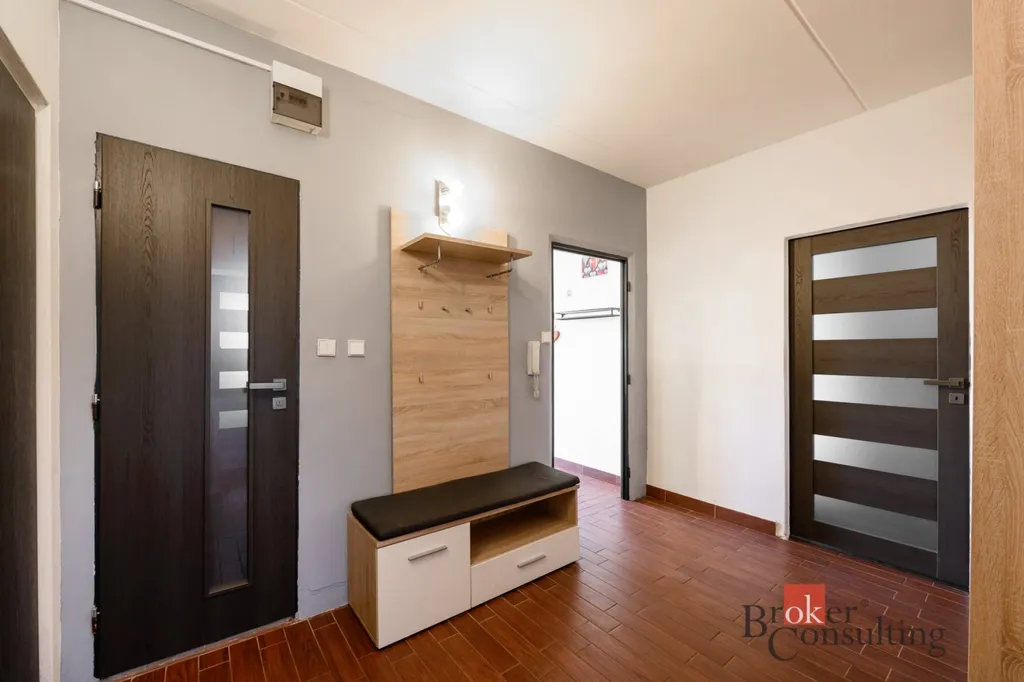 Dispozice bytu zahrnuje kuchyň, prostorný obývací pokoj, ložnici, samostatný pokoj a koupelnu s WC. V obývacím pokoji se nachází krb na biolíh, který vytváří příjemnou atmosféru a dodává interiéru moderní prvek.