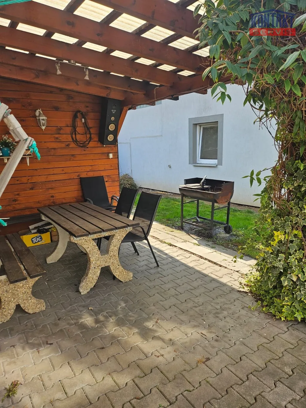 K bytu náleží parkovací stání přímo před domem. Společně s druhým nájemníkem je možné využívat dvorek s pergolou, posezením, venkovním krbem a zahradním domkem – ideální místo pro relaxaci a odpočinek.