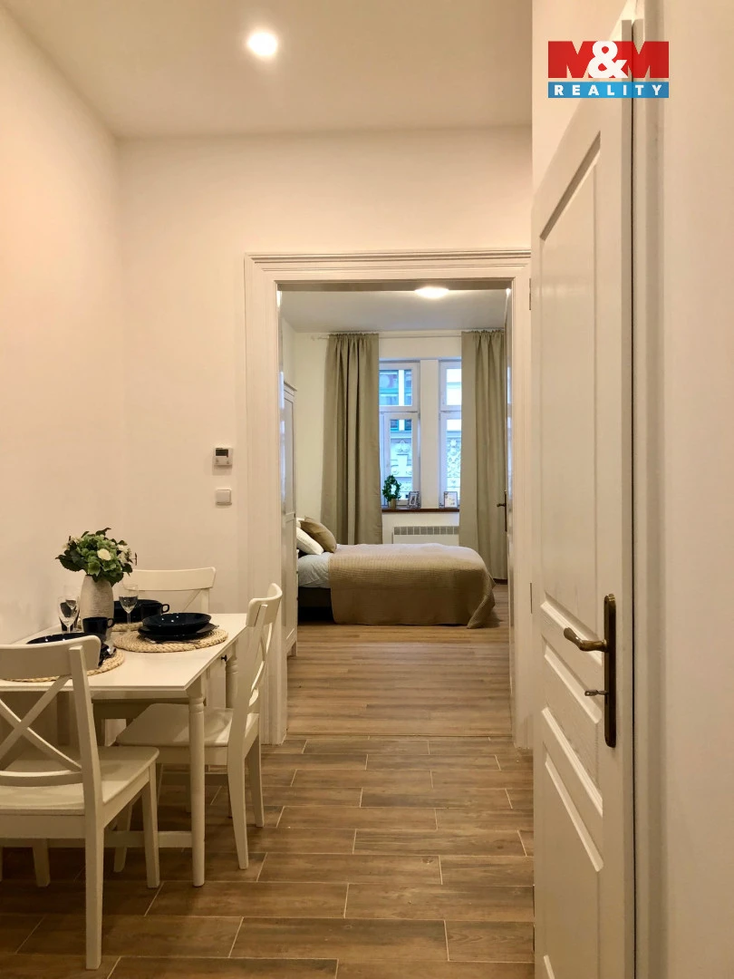 Byt 1+1 s malou kuchyňkou s užitnou plochou 34 m2 v druhém patře cihlového domu na Praze 3 - Žižkov. Byt je velice útulný, vchází se do malé chodby s oddělenou koupelnou a WC, navazuje na jídelní část a kuchyňský kout, dále je velká samostatná místnost, vkusně vybavená. Byt je kompletně zařízený. Vhodný pro jednu až dvě osoby. V těsné blízkosti je Churchillovo náměstí, park Radost a nebo Kostnické náměstí, které dominuje kouzelnou kavárnou Pod Korunami stromu. Veškerá občanská vybavenost a dopravní spojení je v docházkové vzdálenosti. Zastávka tramvaje Seifertova je hned za rohem a hlavní vlakové nádraží je jen jednu zastávku tramvají. Ve volnem čase je příjemné navštívit Riegrovy sady, obrovský labyrintový park, který vás přivede na jiné myšlenky. K nastěhování 1.5. B
