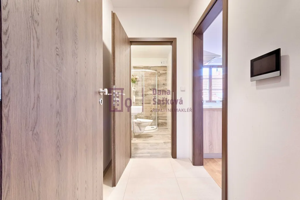 Pronájem bytu o podlahové ploše 23 m2 v prvním patře historického domu bez výtahu na náměstí Míru, Jindřichův Hradec.