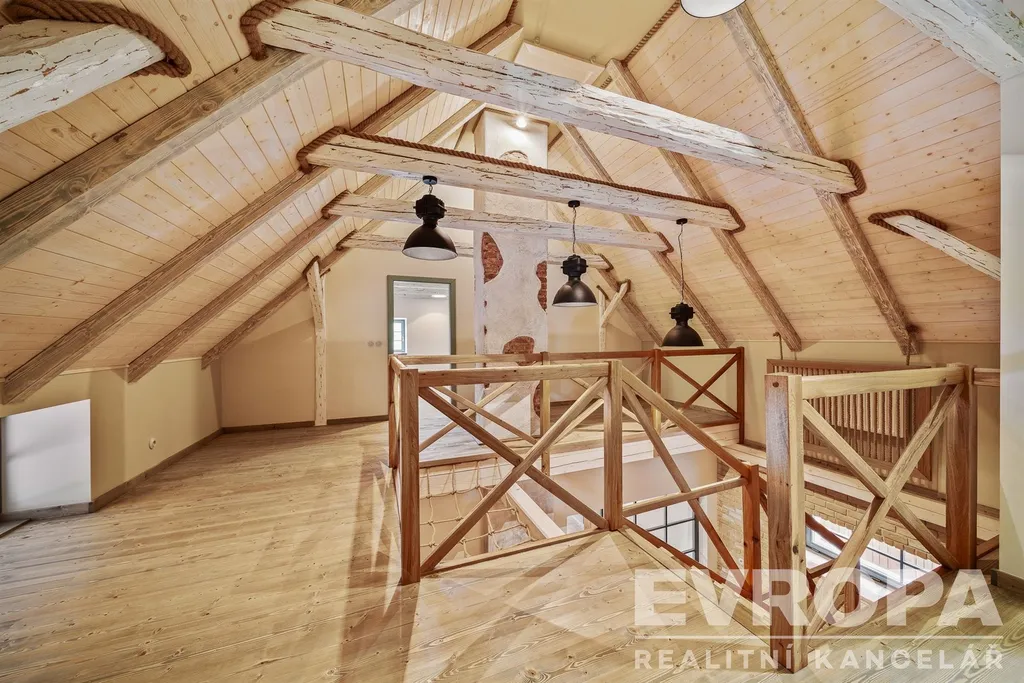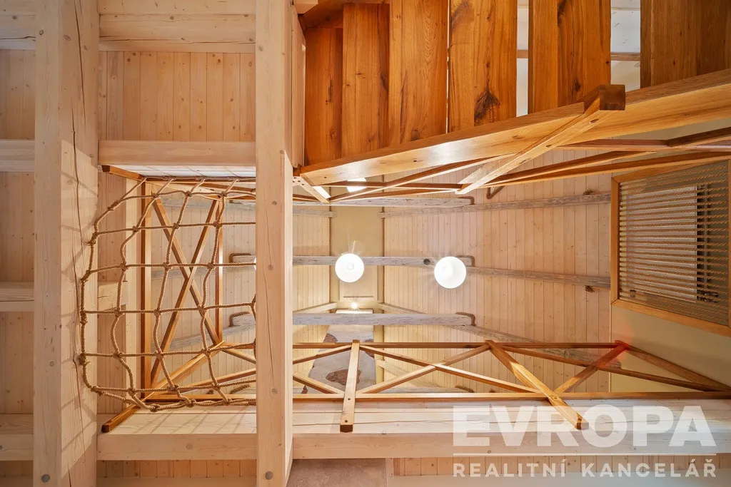 V patře jsou dva velkorysé pokoje s otevřeným podkrovím, které nabízí další možnosti spaní či úložného prostoru.