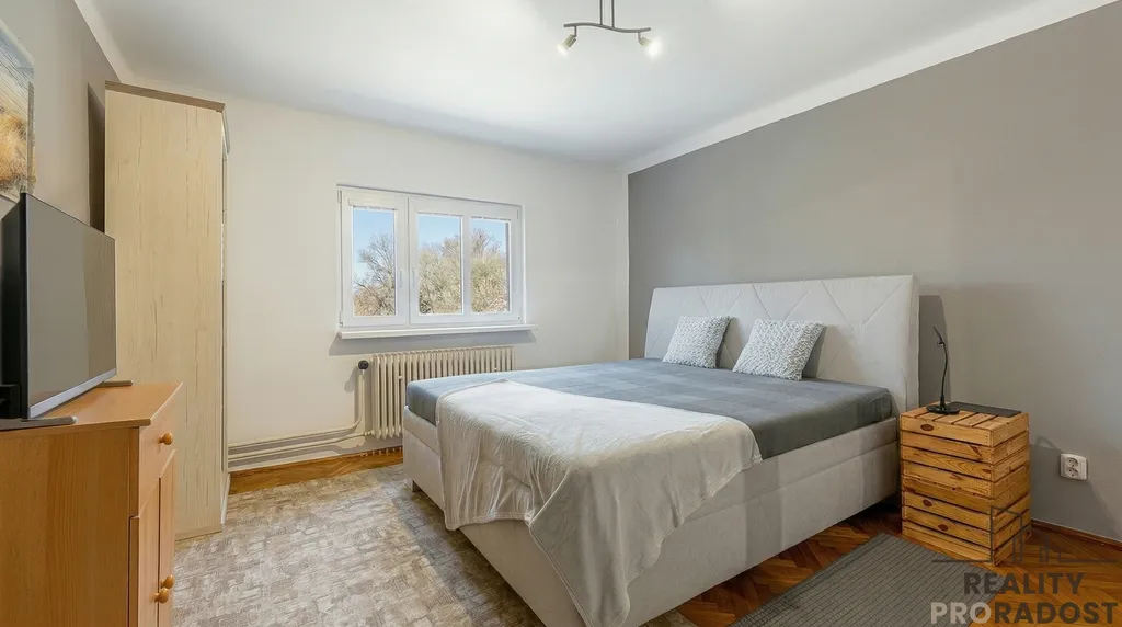 Dům o celkové užitné ploše cca 200 m² se skládá ze dvou samostatných bytových jednotek. Je situován na krásném, rovinatém pozemku o výměře 1 688 m², který přímo sousedí s řekou. Každé ráno tak můžete začít osvěžující koupelí, rybařením nebo relaxací u vody. Velkou výhodou je, že nemovitost není v záplavové zóně a dům nebyl nikdy zasažen vodou.