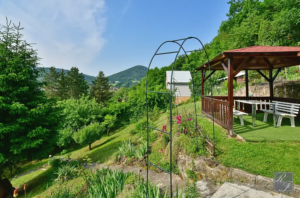 V suterénu se nachází skladovací a technické zázemí s dostatkem prostoru pro veškeré zahradní náčiní. V 1. NP najdeme prostorné zádveří a hlavní obývací prostor s kuchyňským koutem. V podkroví se nachází ložnice, kde se pohodlně vyspí 4 osoby. Na zahradě je vybudováno zastřešené posezení s dostatkem místa pro celou rodinu. Právě z tohoto místa si budete nejvíce užívat již zmiňovaný krásný panoramatický výhled do okolí.