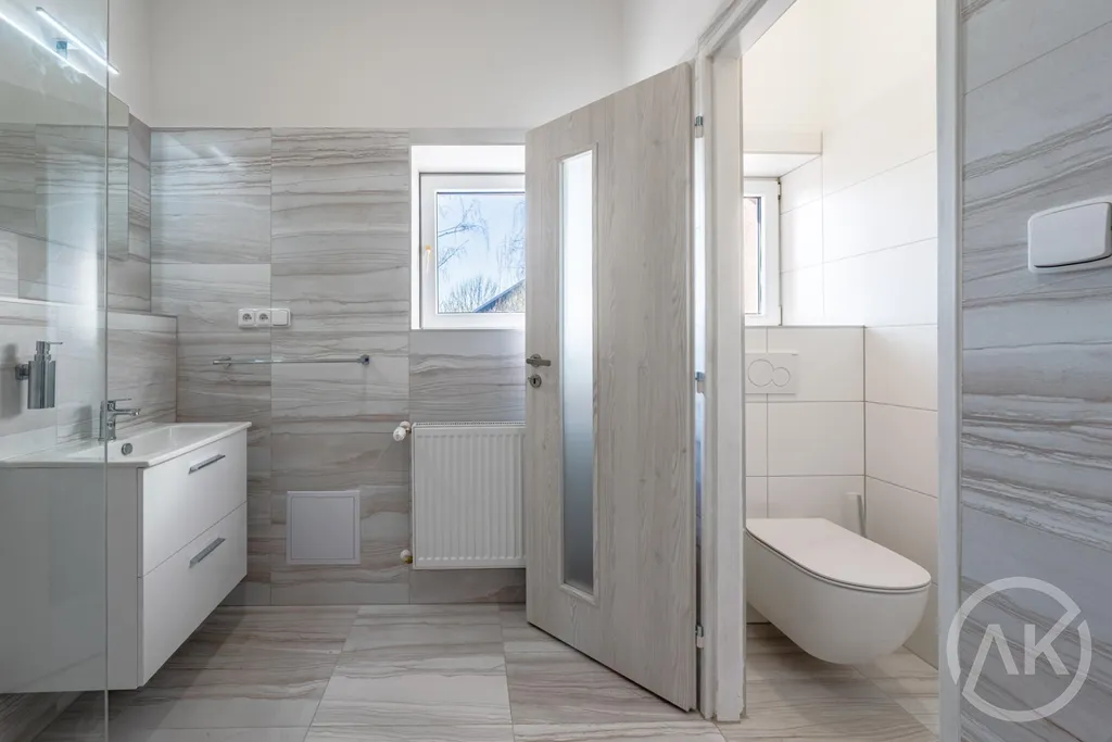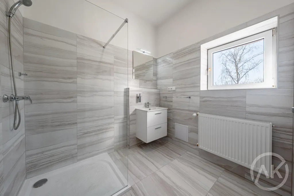 Obytný prostor je tvořen solidním obývací pokojem, moderní, novou kuchyní a koupelnou s velkým sprchovým koutem.