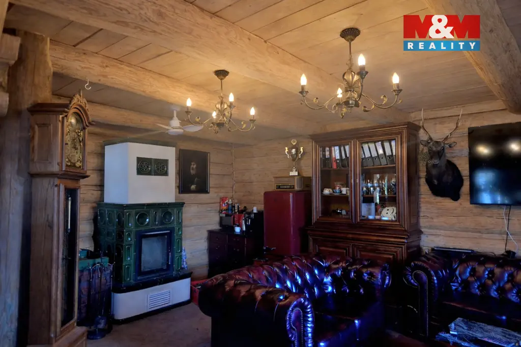 K prodeji dřevostavba/ srub o dispozici 2+kk se zimní zahradou, která byla postavena v roce 2024. Stavbu bez čísla popisného a evidenčního si jeho nový majitel rozebere a odveze na jiný pozemek. Součástí prodeje je větší část vybavení (nábytek) a kachlová kamna. Ve spodní části srubu se nachází vstup na zimní zahradu, vstup do hlavní místnosti s kachlovými kamny. Ve druhém nadzemním podlaží se nachází ložnice. Podlahová plocha činí 68 m2. Stavbu lze postavit na betonové patky. Bližší info u makléře.