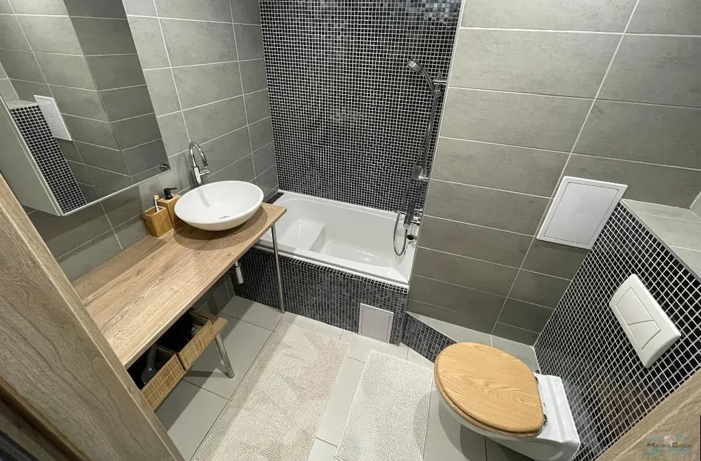 Koupelna i samostatná toaleta jsou zděné, což přispívá k celkové kvalitě a dlouhodobé hodnotě bytu.