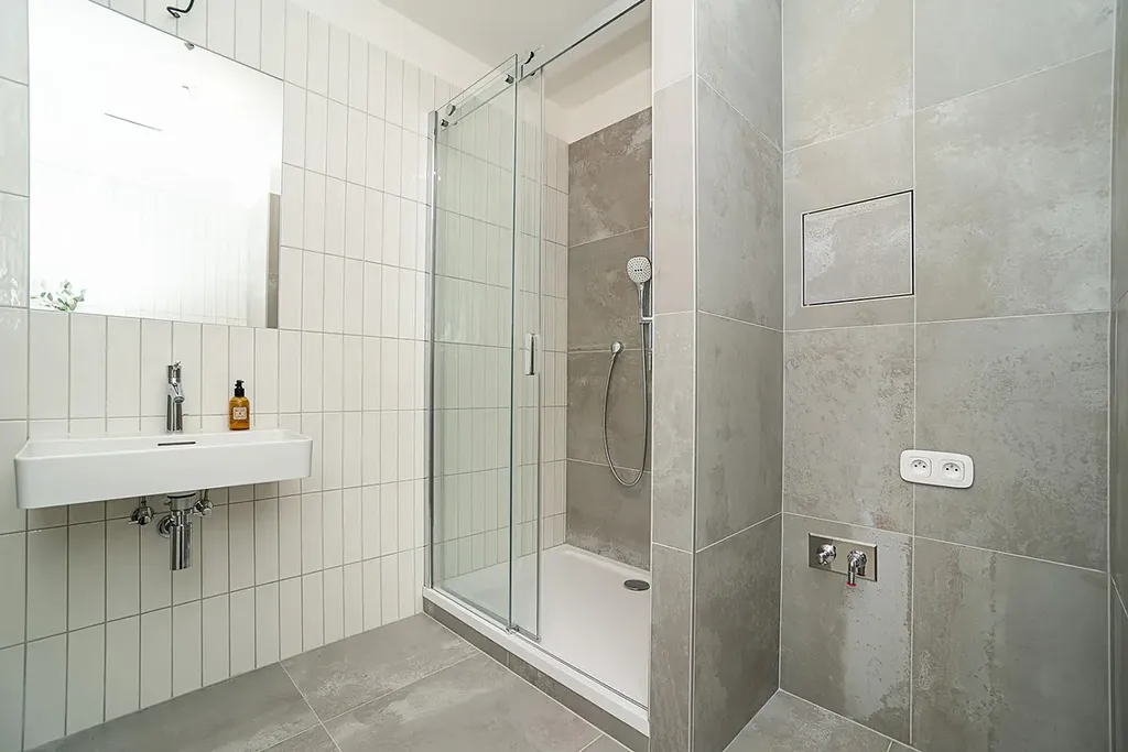 Byt je díky velikým oknům světlý a nabízí dostatek denního světla po celý den, ale ani o soukromí se díky elektricky ovládaným venkovním roletám bát nemusíte. Interiér je velmi vkusný a moderní s důrazem na použití kvalitních materiálů - dřevěná podlaha, hliníková okna, sanitární keramika i obklady a dlažby. Díky nadstandardně vysokým stropům je byt neuvěřitelně vzdušný a působí velkorysým dojmem. Kuchyňská linka je vytvořena na míru a obsahuje všechny vestavěné spotřebiče vč. čtyřplotýnkové varné desky a myčky.