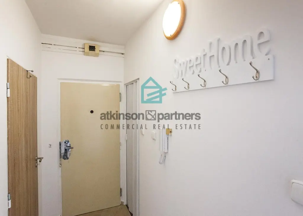 Předsíň, na jih orientovaný obývací pokoj (20 m²) se vstupem na balkon (2,25 m²) a ložnice (16 m²). Na sever je orientovaná kuchyně s jídelnou (12,5 m²). Koupelna s vanou je prosvětlena denním světlem, naproti koupelně se nachází prostorná komora vhodná jako technická místnost nebo šatna.