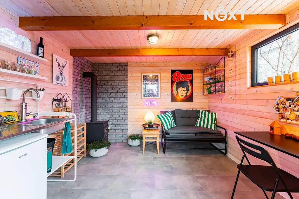 Velkým benefitem je slunná orientace domu i zahrady na jih. Na pozemku o výměře celkem 483 m² najdete udržovanou zahradu ve ferdinandovském stylu s okrasnými i jedlými záhony, 2 terasy, grill point pro letní posezení, zahradní domek se zavedenou vodou, elektřinou, krbovkami a kuchyňkou, dílnu i sklep.