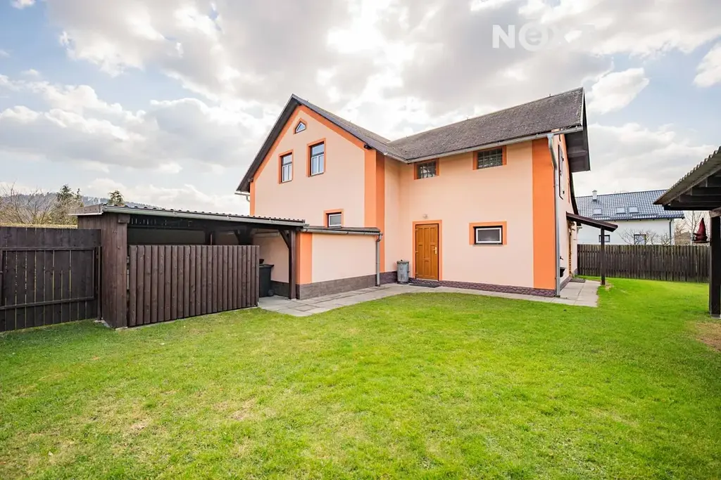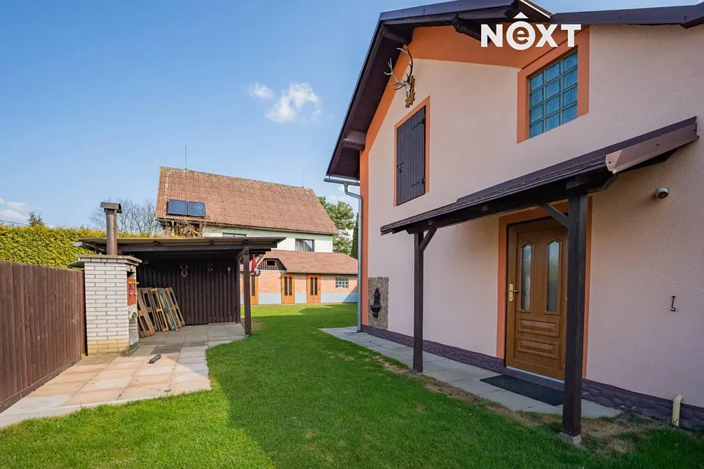 Součástí nemovitosti je také garáž, přístřešek pro parkování a příjemné venkovní posezení ve stylu pergoly, které je ideální pro odpočinek i setkávání s rodinou a přáteli. Okrasná zahrada spolu se skleníkem potěší nejen milovníky zahradničení.