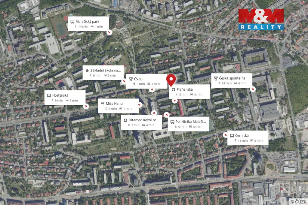 Nemovitost má skvělou dostupnost (MHD na metro A Želivského) a samozřejmostí je plná občanská vybavenost v okolí (Malešický park, školy, obchody, poliklinika).