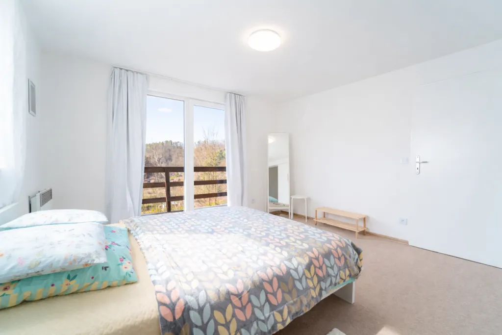 Dům má dispozici 3+kk a je řešen jako dvoupodlažní stavba s balkonem o velikosti přibližně 7 m2, ze kterého se otevírá krásný výhled přímo na řeku. Nemovitost prošla v loňském roce kompletní rekonstrukcí, při které došlo mimo jiné k nahrazení původní dřevěné konstrukce zděnou stavbou z tvárnic Ytong. Dům je nově zateplený, má provedené kvalitní izolace a celkově splňuje požadavky na komfortní užívání i v rámci celoročního bydlení.