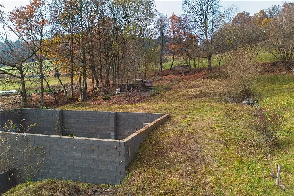 * samostatný stavební pozemek, na kterém se nachází zděná kolna a rozestavěná stodola. Po dokončení ji lze využít například jako další garáže, dílnu nebo skladové prostory.