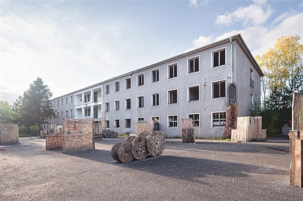 Dominantou oploceného areálu o celkové výměře 50 621 m² je třípodlažní budova bývalých kasáren se zastavěnou plochou cca 900 m², která nabízí přibližně 2 000 m² podlahové plochy. Objekt je konstrukčně řešen jako železobetonový skelet s výplňovým zdivem a po statické stránce je ve výborném stavu. Jeho současný stav odpovídá hrubé stavbě a poskytuje široké možnosti budoucího využití.