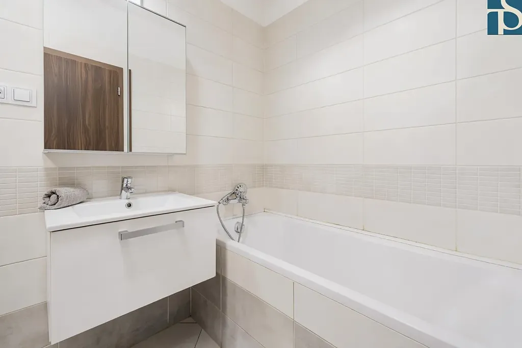 Dispozice bytu je promyšlená tak, aby dávala smysl každodennímu životu. Obývací část s kuchyňským koutem tvoří srdce bytu, zatímco ložnice nabízí klid a soukromí. Dále je v bytě prostorná předsíň, které dominuje vestavná skříň a velká koupelna. Celý prostor působí vzdušně a příjemně.