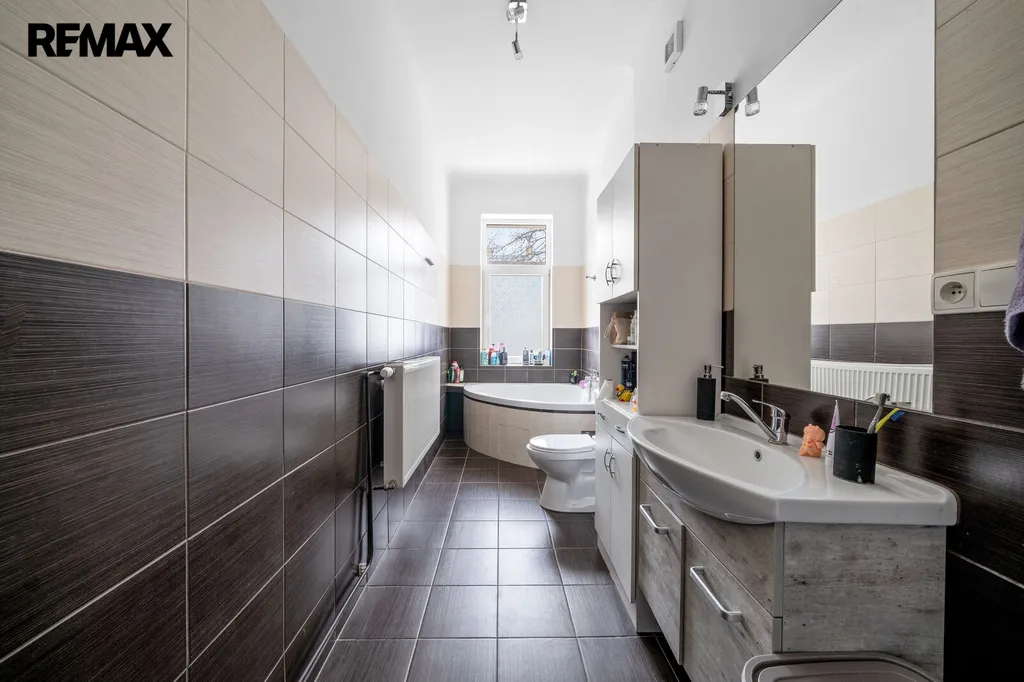 K bytu náleží velká terasa o výměře 22,8 m² a nabízí tak praktickou dispozici tří samostatných pokojů, prostornou obytnou kuchyň s jídelnou, koupelnu s vanou, WC a vstupní chodbu. Díky umístění ve vyšším podlaží působí byt světlým a klidným dojmem.