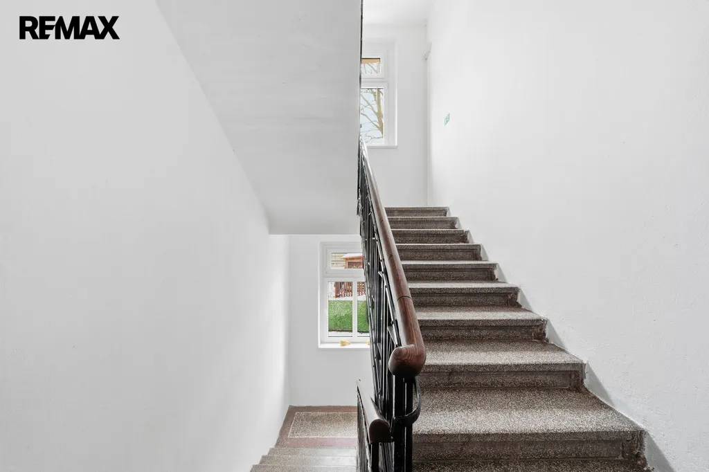Byt je součástí udržovaného domu s dlouhodobými nájemníky.