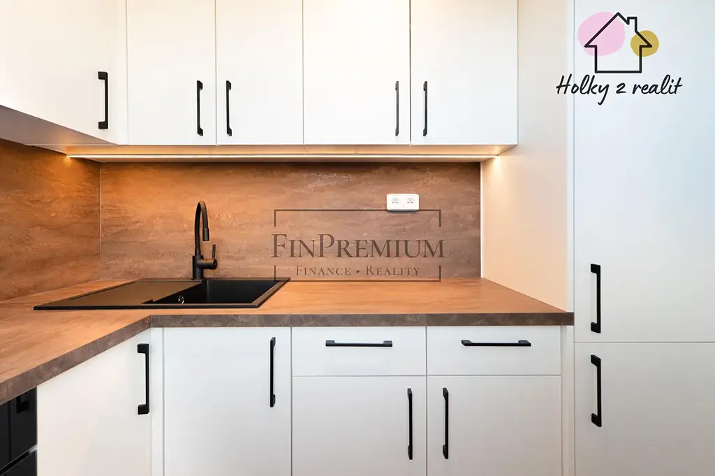 Byt nabízí prakticky řešený obytný prostor s kuchyňským koutem a dostatkem úložných prostor. Byt je částečně zařízený, k dispozici je kuchyňská linka se spotřebiči (lednice, trouba, varná deska). Součástí je koupelna se sprchovým koutem a samostatné WC, což zvyšuje komfort bydlení. K bytu náleží také sklepní kóje.