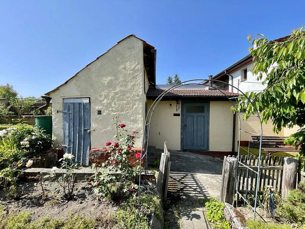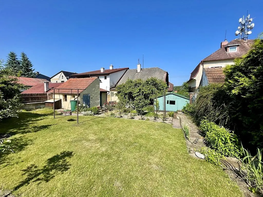 K dispozici je garáž (19 m²), a na zahradě další technické místnosti. Plynový kotel vytápí celý dům. Vodovod a kanalizace je obecní.