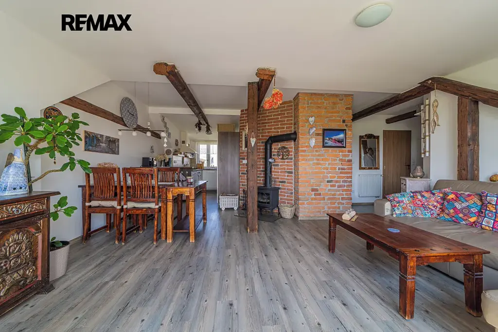 Exkluzivně nabízíme ke koupi atypický podkrovní byt na okraji města Šumperka s dispozicí 3+kk. Tento byt, resp celý půdní prostor, byl kompletně nově zbudován v roce 2011. Přestavba zahrnovala výměnu krovů, izolace, podlahy, kompletní instalace, mezibytové příčky, bytové příčky, okna, dveře, balkóny, střešní krytinu. Byt je plný velmi pozitivní energie a je velmi slunný, což lze korigovat zabudovanou klimatizací, kterou můžete rovněž v chladnějších dnech přitápět. Další příjemný zdroj tepla jsou vysoce výhřevná krbová kamna. Pro pohodlnou temperaci a vytápění je k dispozici ještě elektrokotel s teplovodním rozvodem. Byt samotný je uživatelsky velmi příjemný a má dobře řešenou dispozici, která nabízí mnoho úložných prostor jak na chodbách, tak v šatně. Dětský pokoj a obývací pokoj s balkónem jsou orientovány na jihozápad, nabízí krásné výhledy do přírody zalité sluncem. Kuchyně, ložnice a koupelna jsou orientovány do vnitrobloku na severovýchodní stranu.