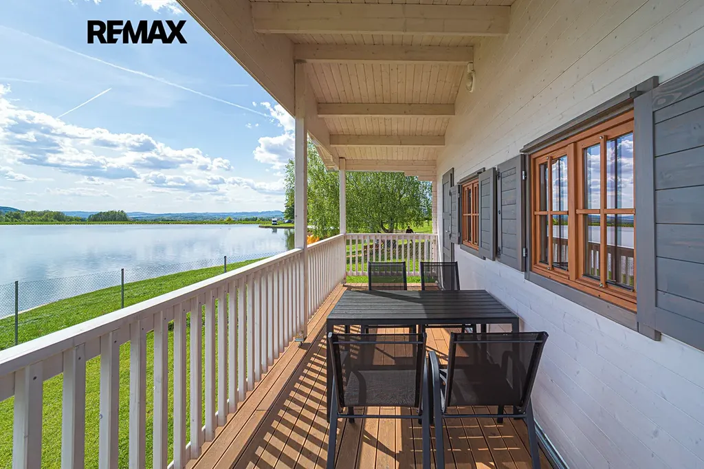 Terasa - Každá chatka má zastřešenou terasu (10 m²) s relaxačním výhledem přímo na hladinu přehrady.